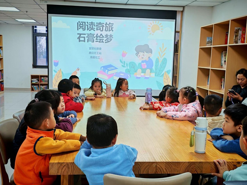 为丰富社区儿童文化生活,激发阅读与艺术兴趣,2025年11月8日下午,安徽职业技术大学蒲公英社会工作协会联合合肥新站区海星社会工作服务中心,在富郢社居委活动室举办“阅读奇旅,石膏绘梦”绘本阅读主题活动。
