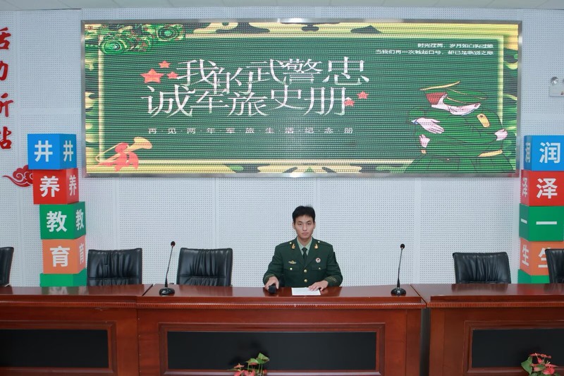 活动现场,身着军装的退役士兵大学生以“再见,两年军旅生活”为脉络,通过《我的武警忠诚军旅史册》纪念册分享了军营里的成长故事:从首次体能测试的咬牙坚持,到日常训练的摸爬滚打,生动的讲述搭配训练照片,让同学们直观感受到军人的坚毅与担当。