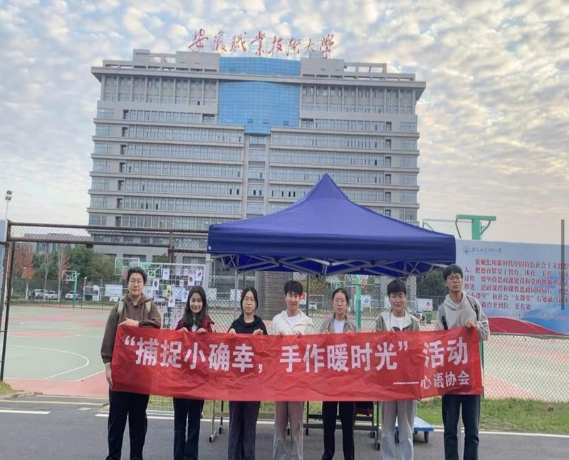 2025年11月12日,为了让同学们发现并记录身边微小的幸福与感动,心语协会于皖韵苑食堂门口和线上平台同步开展“捕捉小确幸,手作暖时光”活动。本次活动旨在引导同学们发现日常微小幸福、在动手实践中放松身心,活动形式丰富多元,吸引同学们热情参与。