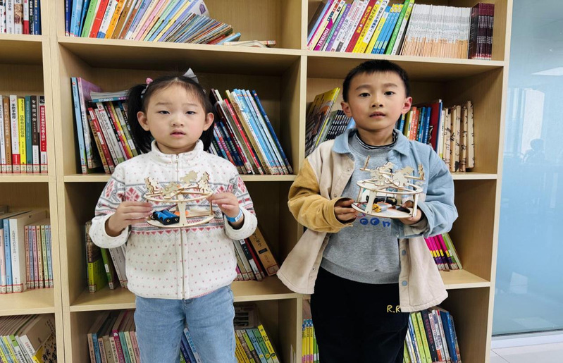 活动开始,志愿者通过趣味十足的演示和互动问答,为孩子们开启了一堂生动的“物理动力小讲堂”。齿轮如何传志愿者动、离心力有何奥秘……这些看似深奥的物理知识在的引导下变得通俗易懂,成功点燃了孩子们对科学原理的好奇心。随后,活动进入了核心环节——“旋转木马手工挑战”。孩子们化身“小小工程师”,专注地投入到模型组装中。他们利用发放的材料包,亲手将一个个零件拼搭成能够真正转动的旋转木马。完成基础组装后,孩子们还发挥创意,用彩笔为自己的作品进行独一无二的装饰,最终共同启动了满载成就感的旋转木马,分享着创作与成功的无限乐趣。