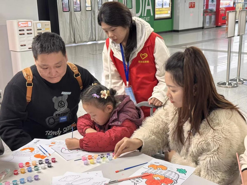 下午四时,活动在地铁职教城站厅正式开始。工作人员首先为同学们系统讲解了二十四节气的历史渊源、气候特征及民俗传统,带领志愿者探寻古历法智慧,感悟文化内涵与当代价值。创意实践环节,学生们或挥笔在空白画纸勾勒节气风貌,或为精美线稿填涂斑斓色彩,用画笔勾勒出各自对节气文化的理解与感悟。活动现场气氛热烈,吸引了大量家长儿童共同参与了此次活动,志愿者和小朋友们一起潜心创作,以笔墨传情、色彩表意,尽显对传统文化的独特理解。