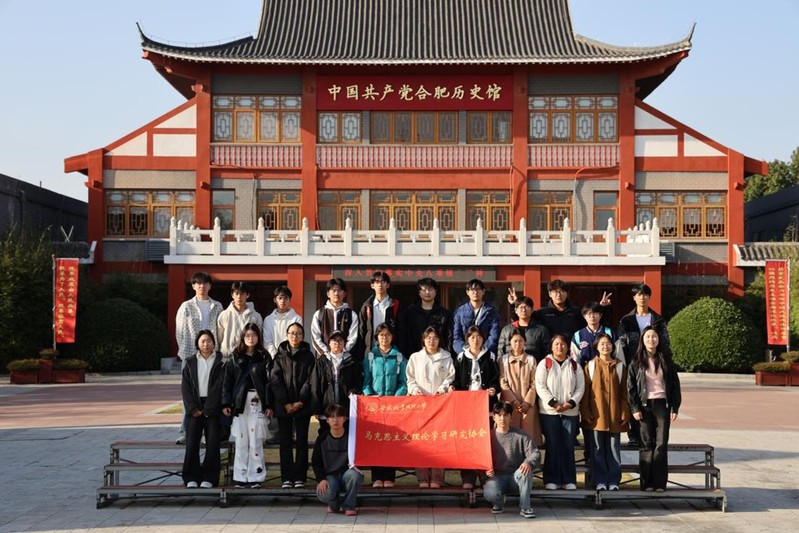 活动伊始,青年学子在讲解员的专业引领下,先后步入新四军第四支队东进抗日纪念馆与中国共产党合肥历史馆,以场馆为媒介、以历史为教材,开启沉浸式红色学习之旅。馆内通过文字史料、实物展品、场景复原等多种形式,新民主主义革命时期、社会主义革命和建设时期、改革开放时期、中国特色社会主义新时代四个历史阶段为脉络,深入了解合肥人民在党的领导下投身抗日救亡、铸就不朽功勋的壮阔历程。