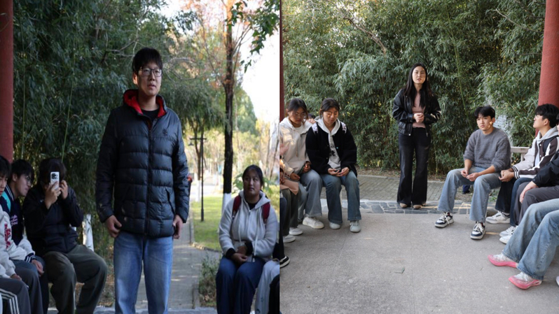 随后,社团成员在纪念碑旁的小亭子中展开了一次别开生面的分享会,同学们结合参观所见所闻畅谈心得体会。大家纷纷表示,革命先烈的英勇事迹令人动容,如今的幸福生活来之不易,作为新时代青年,更应铭记历史、传承精神。现场交流氛围热烈而真挚,思想的碰撞、情感的共鸣,让红色基因在轻松的氛围中悄然传递。