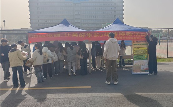 11月27日10:00-16:00,绿色环保协会于安徽职业技术大学皖韵苑食堂门口举办了一场主题为“旧物换绿,让美好生长”的绿植换购活动,让大家可以用废旧的物品来换取一颗冬日的绿意。邀请同学们用举手之劳,为地球添一抹生机!