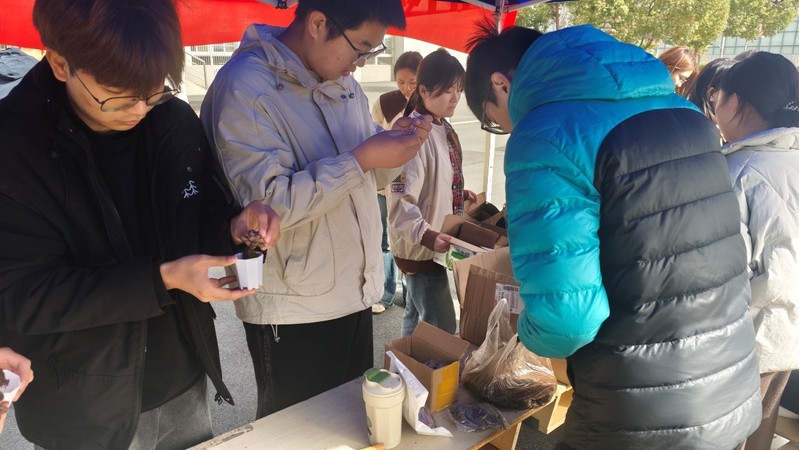活动当天,已报名活动的同学们提着攒好的塑料瓶,纸箱等废旧物品有序排队,工作人员认真清点数量后就可以挑选自己心仪的多肉。跟随着下课铃声的响起,来往的同学越来越多,当他们听到没有报名活动的同学们也可以参加进来时,都跃跃欲试,想为校园的冬天增添一抹绿色。活动结束后,工作人员将收到的废旧物分类整理好,统一交给专业回收机构处理,在充实活动历程的同时实现资源的循环利用。