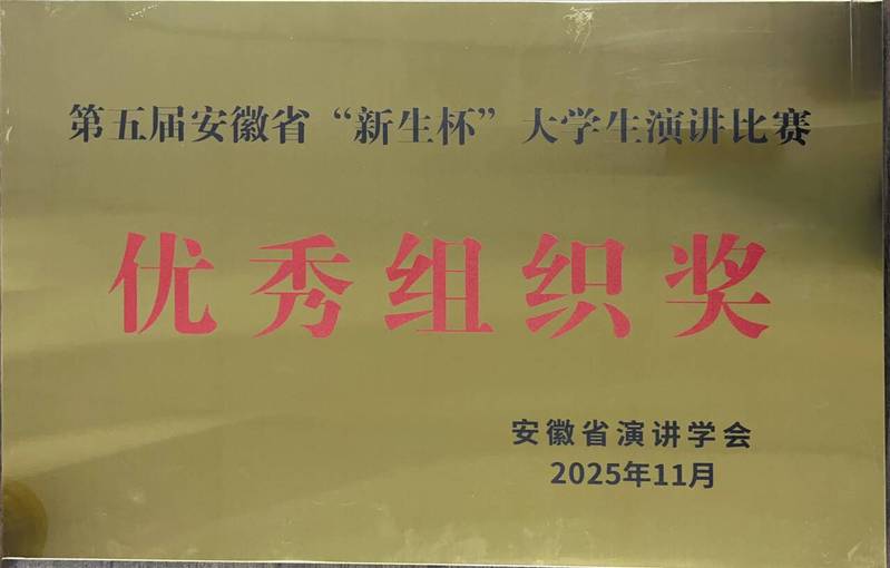 江淮文脉绵延,八皖气韵勃发。为深入践行习近平文化思想,落实习近平总书记考察安徽重要讲话精神,传承地域文化、彰显青年担当,由安徽省演讲学会主办的第五届安徽省“新生杯”大学生演讲比赛近日圆满落幕。我校凭借周密组织、扎实筹备,获评“优秀组织奖”。
