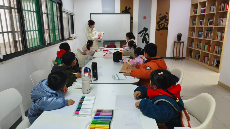 12月13日上午10点,磨店社区光明社居委活动室内洋溢着欢声笑语。一场主题为“动物知识小讲堂”的儿童公益美术活动在这里温馨展开,社区内的孩子们在安徽职业技术大学书画协会志愿者的带领下,开启了一场沉浸式的自然探索与艺术创作之旅。