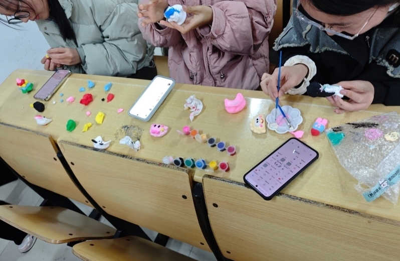 本次活动不仅是一堂生动的美育实践课,更成为了校园社区营造的有效载体。师生们在共同创作中交流技巧、分享灵感,现场笑声不断,暖意融融。许多完成作品的同学兴奋地与自己的“首作”合影,记录下这份独特的冬日记忆。