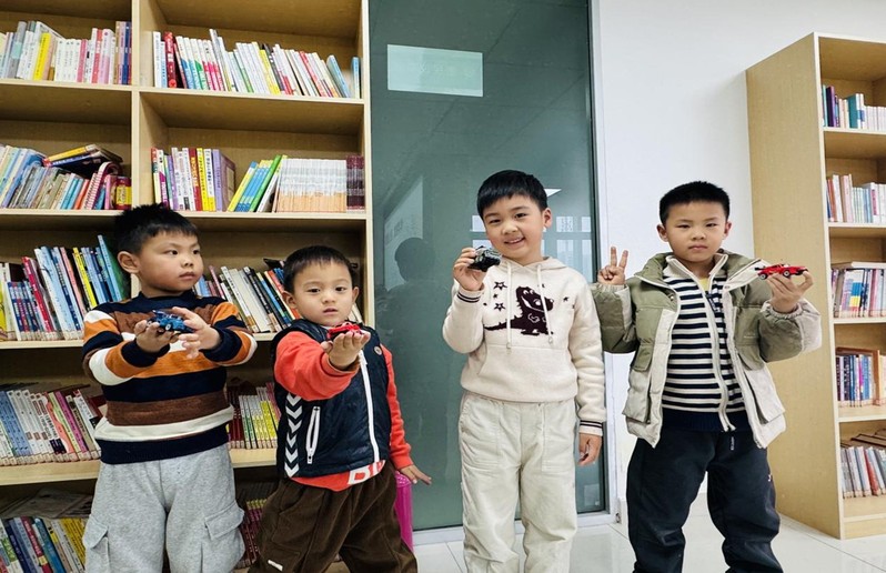 活动开始,志愿者和社工借助模型与动画,将赛车的动力传递、齿轮变速等基础原理化为直观有趣的讲解,孩子们在踊跃的互动问答中初窥科学原理。紧接着,“赛车积木拼装挑战”环节,孩子们领取专属积木套装,在志愿者和社工的指导下一步步完成底盘搭建、传动系统组装、车轮与车体整合。当基础车型陆续诞生,活动进入“创意改装与展示”阶段——孩子们自由发挥想象,为赛车添加个性涂装、独特尾翼等装饰,并兴奋地分享自己的设计思路与拼装心得。