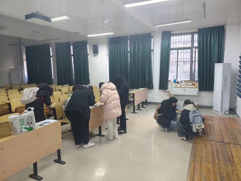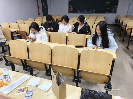 创作过程中,同学们也不忘相互交流、彼此协助。大家主动分享配色技巧、制作心得,遇到难题时互帮互助,陌生的成员在交流中逐渐熟络,熟悉的伙伴则在协作中更添默契。教室中不时传来欢声笑语,轻松融洽的互动氛围,让手工创作不仅是一场创意实践,更是一次温暖的社交体验。