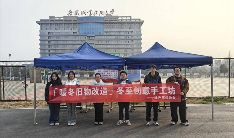 寒冬已至,温情不减。为践行绿色环保理念,传递循环利用价值,12月30日10:30至15:40,安徽职业技术大学绿色环保协会在皖韵苑食堂门口成功举办“暖冬旧物改造”主题活动,全校同学踊跃参与,用创意为旧物注入新生,让温暖与环保在校园中传递。