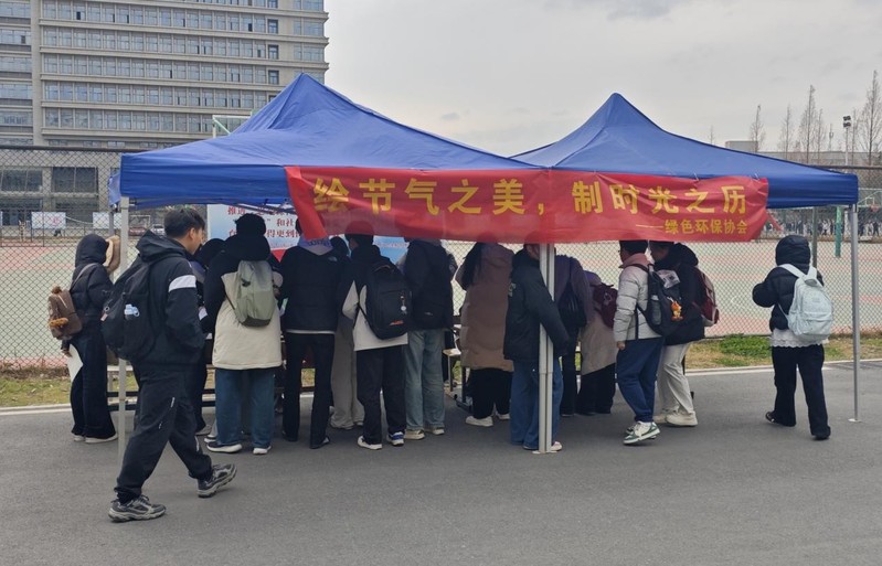 为传承中华优秀传统文化,让二十四节气智慧融入校园生活,2025年12月31日10:30至15:40,由安徽职业技术大学绿色环保协会举办办的“绘节气之美,制时光之历”活动在北区皖韵苑食堂门口顺利开展,全校同学踊跃参与。