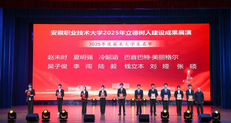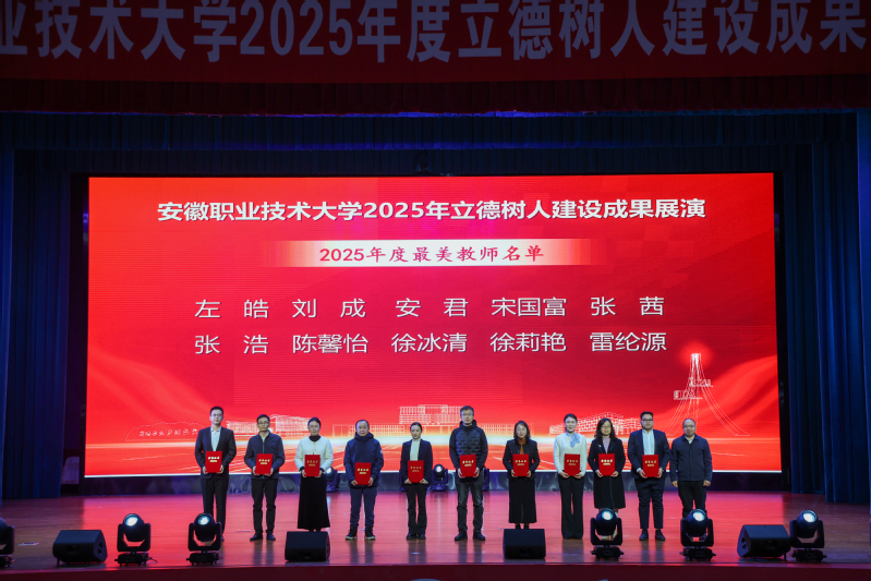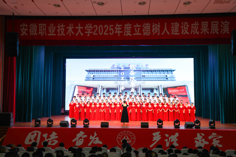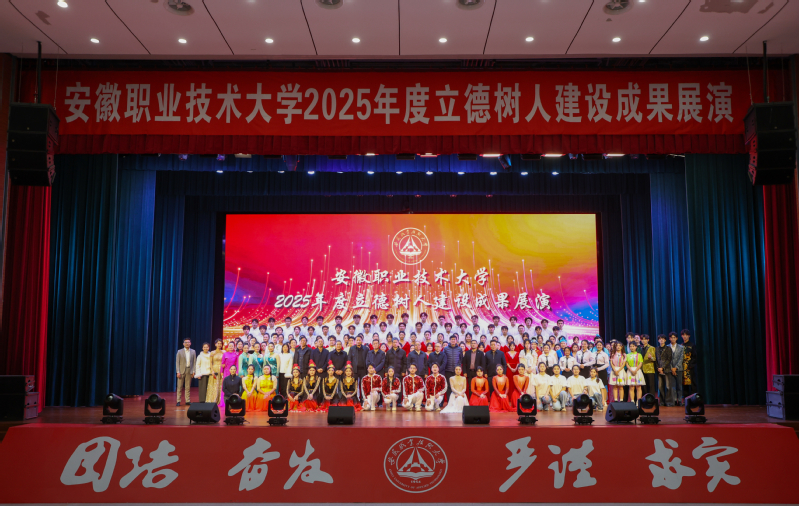 (团委 工会)12月31日,安徽职业技术大学2025年度立德树人建设成果展演在至立会堂成功举行。校领导,各职能部门负责人、各二级学院负责人及全校师生代表800余人齐聚一堂,共同回顾学校2025年立德树人建设成果。