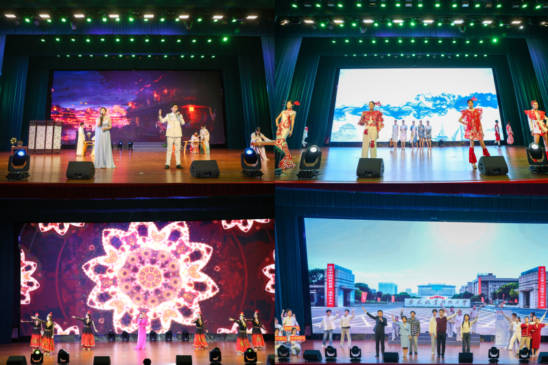 潜心育人,桃李芬芳;奋楫争先,硕果累累。在绚丽灯光与优美旋律映衬下,第二篇章《同心·共振》精彩继续。泰国留学生献唱《甜蜜蜜》,展现校园文化的多元性;《初耀星芒》《花之圆舞曲》等节目节奏明快、演绎生动,唱演出了青年学子们对母校的深情,也彰显了将个人理想融入国家事业的青春担当。