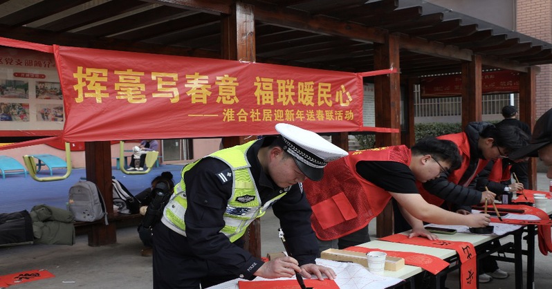 为迎接2026年新春佳节,深入践行美育教育与社会服务精神,弘扬中华优秀传统文化,1月16日下午,由共青团安徽职业技术大学委员会主办、校书画协会承办的“翰墨飘香送福进社区”主题活动,在合肥市新站高新区七里塘社区淮合社居委成功举办。活动将传统书法艺术与社区文化服务深度融合,为居民送上了真挚的新春祝福,营造了喜庆祥和、文明和谐的浓厚节日氛围。