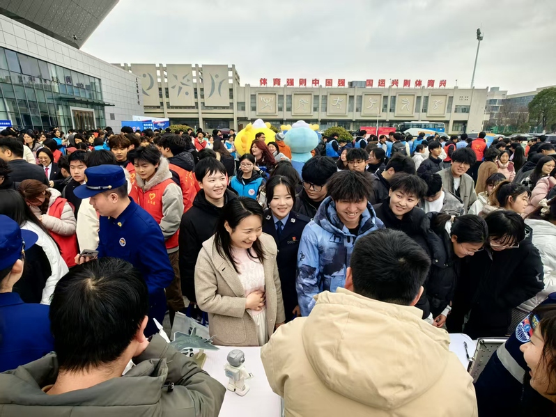志愿服务活动现场,28个特色服务展台沿广场有序排布,各单位紧扣自身职能优势,为师生带来内容丰富的惠民服务。安全宣传展区人气颇高,公安民警现场展示无人机和警犬技术,开展反诈、交通安全和禁毒知识普及;国家安全宣传展台前,志愿者结合典型案例讲解国家安全相关法律法规,普及反间谍、网络安全防护等知识,引导师生树立总体国家安全观,自觉维护国家安全利益;消防展示台前,师生争相体验灭火器实操,学习应急处置实用技能;法律咨询、就业服务、生态环保、气象科普等展台前,志愿者们耐心解答师生疑问,把专业服务送到大家心坎上。活动现场氛围热烈,师生们纷纷为志愿者的专业服务点赞,取得了良好的宣传服务效果。