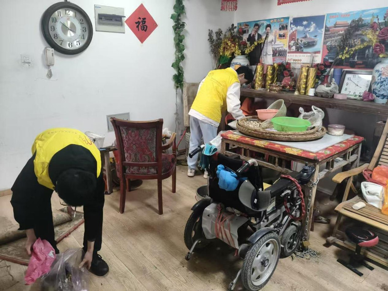 活动当天,由志愿者与社工组成的清扫队伍早早集合,带着扫把、抹布、清洁剂等工具,分组前往老人家中。大家分工协作。在打扫卫生的同时,志愿者与老人们亲切交谈,详细询问他们的身体状况和生活中遇到的困难,耐心倾听他们的心声,并仔细检查了老人家中的水电煤气是否存在安全隐患,提醒他们注意春季用火用电安全。