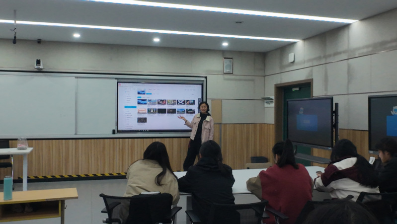 开场后,活动负责人围绕“英文脚本构思、口语配音、基础剪辑” 三大核心模块展开教学,结合剪映软件实操演示视频制作全流程:从英文脚本的逻辑搭建,到口语配音的发音与情感把控,再到基础剪辑的转场、字幕添加技巧,一步步引导学生上手实践。同时,工作人员还结合实例讲解了镜头语言的运用,鼓励大家用画面传递英语魅力,让语言学习更具趣味性与实用性。