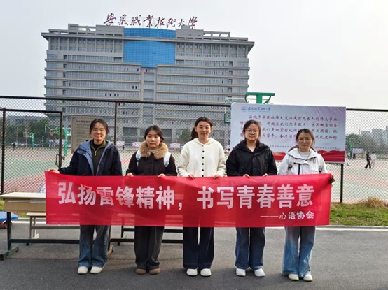 2026年3月20号,为了深入贯彻学雷锋志愿服务精神,丰富校园文化生活,心语协会于皖韵苑食堂门口开展“弘扬雷锋精神,书写青春善意”活动。本次活动旨在引导同学们践行社会主义核心价值观,让雷锋精神内化于形,外化于心,营造互助友好文明和谐的校园氛围。
