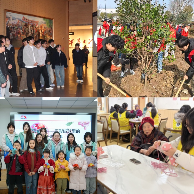 校地联动服务社会,彰显青年责任担当。青年学子主动走出校园、对接社会资源,深化校地协同,立足专业特色开展精准志愿服务,锤炼个人本领。学子们积极参与地铁文明引导、义务植树、社区宣传及环境治理,赴红色教育基地研学厚植家国情怀,走进敬老院开展敬老助老服务,以专业所长践行责任,传递温暖与担当。