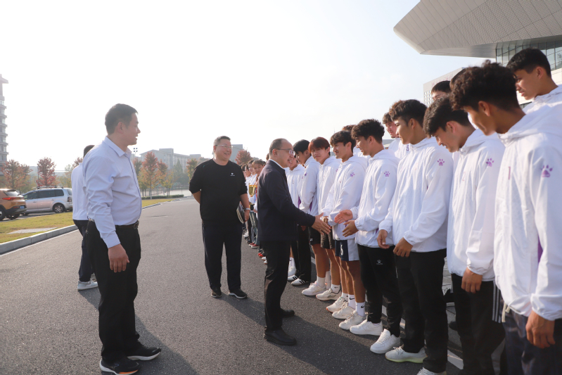 10月17日下午球队凯旋归校,学校党委书记李方泽来到体育馆,看望慰问参赛师生并表示热烈祝贺。他指出,校足球队队员们以实际行动展现了安徽职业技术大学学子的青春风采和昂扬斗志,为学校赢得了荣誉,为全校师生树立了榜样。他鼓励全体队员们继续发扬体育精神,保持良好的竞技状态,力争在即将到来的徽青赛中再创佳绩。