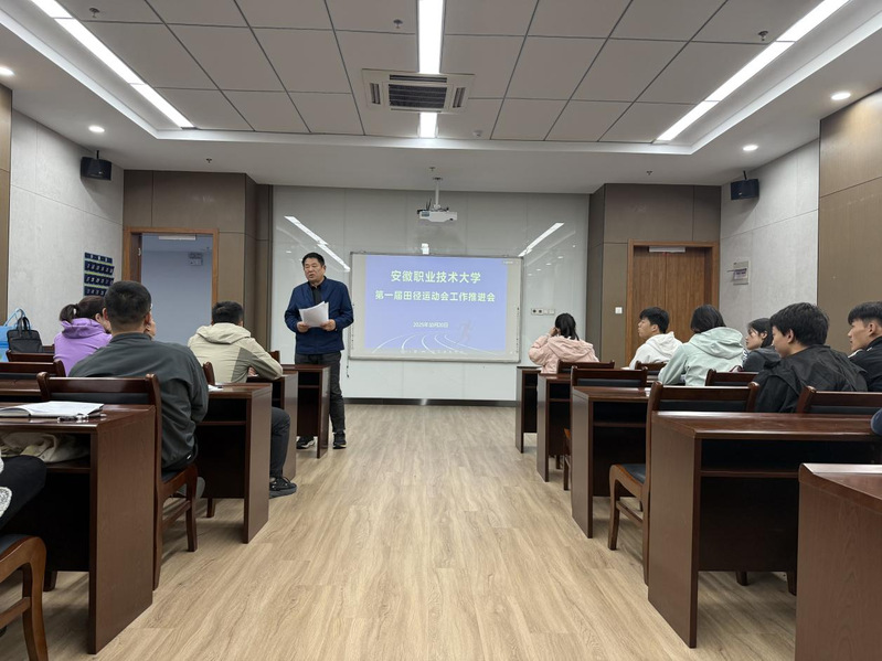 为确保安徽职业技术大学第一届田径运动会顺利举行,10月20日下午,体育健康学院召开安徽职业技术大学第一届田径运动会工作推进会。会议由公共体育教研室党支部书记李海燕主持,体育健康学院行政负责人高立克、相关负责老师、各学院负责老师和体育部部长参加了会议。