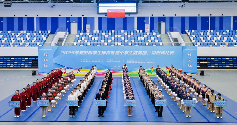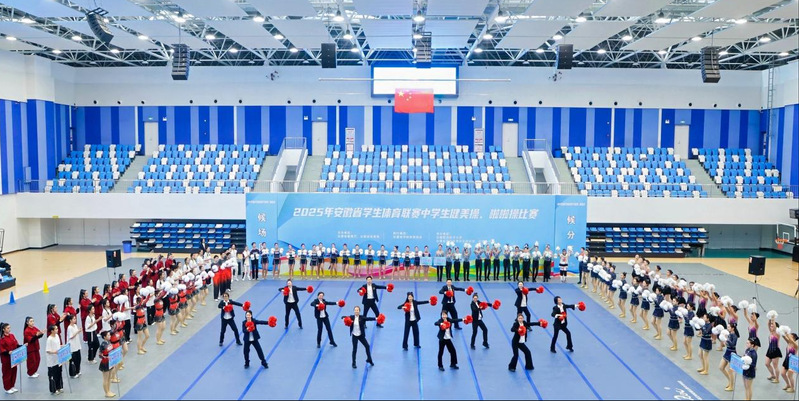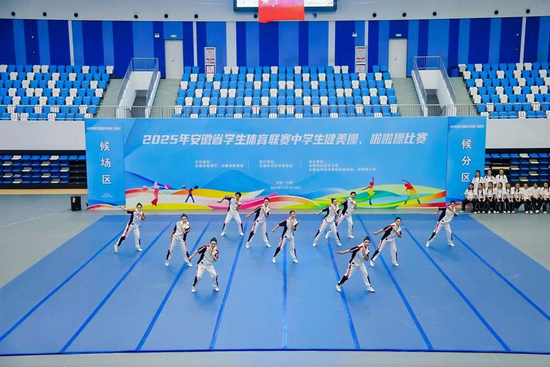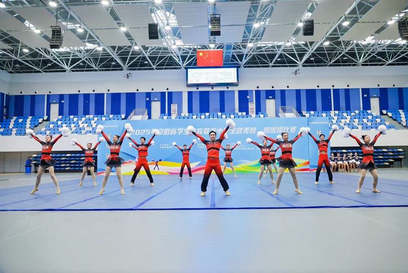 2025年安徽省学生体育联赛中学生啦啦操比赛于12月19日在学校至高体育馆举行。安徽省教育厅、安徽省学校体育协会、体育健康学院党政负责人等相关单位领导及嘉宾出席活动,来自全省各地的参赛队伍、裁判员及师生代表共同参与。开幕式由体育健康学院党总支书记张在腾主持。