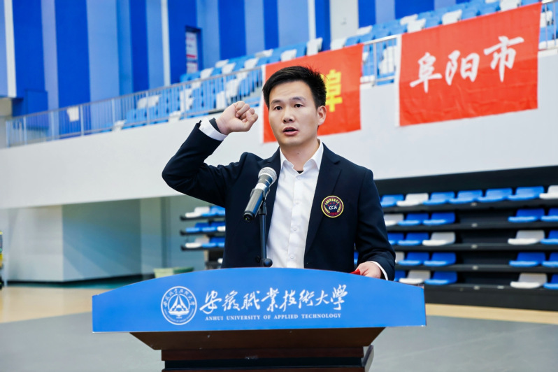 安徽省教育厅体卫艺处二级主任科员陆涛宣布比赛正式开幕。运动员代表与裁判员代表分别宣誓,承诺恪守赛事规则,确保比赛公平公正。裁判员团队还进行了精彩的啦啦操示范表演,展现了扎实的专业能力与昂扬向上的精神面貌。