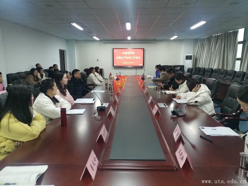 12月13日,外国语学院在图文信息中心十三楼会议室召开全面从严治党工作会议。会议由外国语学院党总支书记何晓皖主持,外国语学院副院长胡菁蕾和全体教职工参加了会议。