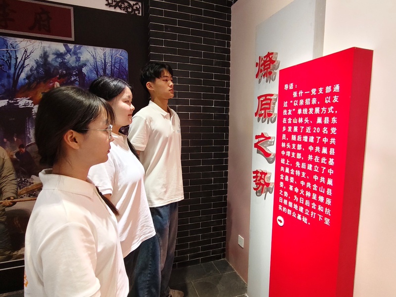7月2日,实践团来到含山县第一个革命党支部事迹陈列馆,“星星之火”“峥嵘岁月”“燎原之势”三个篇章,生动展现了含山县第一个党支部的发展历程。每一个革命事迹,每一张革命图景,每一段革命文字,都蕴含着革命先辈们崇高的革命信念,不断激励青年学子们奋发图强,让红色精神在新征程绽放出更加绚丽的光芒。