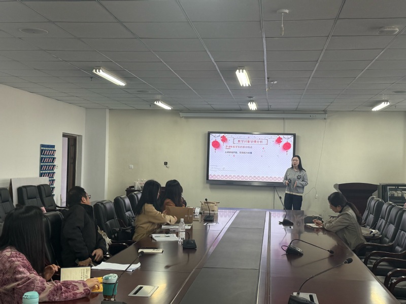 随后,学院青年骨干教师桂小黎以《通用大学英语1》第二单元为例,结合职业本科教育特色,围绕学生学情、教学目标、重难点突破及课程思政等方面进行了备课展示。与会教师聚焦课程思政落地策略、作业形式创新及考核评价优化展开深度交流,英语教研室负责人就教师提出的疑难问题逐一进行解答。