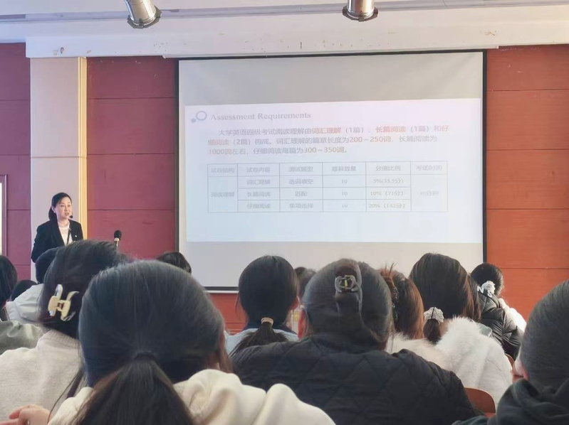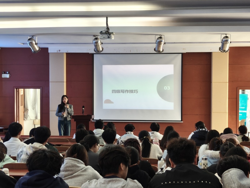 为助力我校学子高效备战大学英语四级考试,11月12日,外国语学院联合校团委外语协会在博学楼附楼1楼成功举办专题讲座。本次讲座由梅玲与刘琳两位老师担任主讲,吸引了约130名同学踊跃参与。