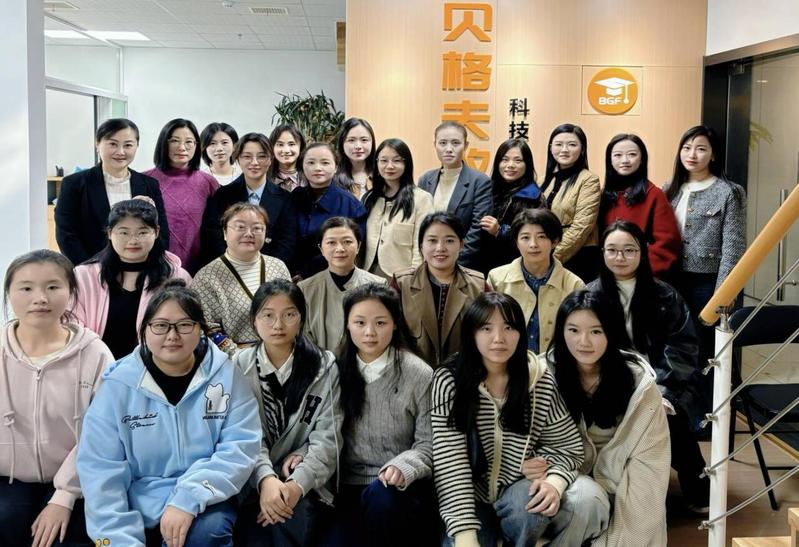 为深入贯彻落实教育厅关于职业学校学生实习工作的相关文件精神,确保各项实习管理制度和要求执行到位,也为进一步深化校企合作,11月12日,外国语学院院长胡菁蕾带领教研室主任及教师代表,赴合肥贝格夫教育科技有限公司调研,并看望了商务英语2023级参与企业实践教学的学生。