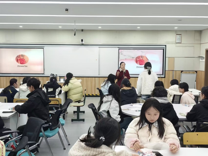 为丰富同学们的英语学习生活,增强其对英语学习的兴趣,12月10日下午,外国语学院在明德楼201教室举办了每周一次的英语角活动。本周英语角化身为“非遗工坊”,以“Chinese Fans”为主题,由外国语学院的两位英语老师带领学生们走进摇曳生姿的东方美学世界。