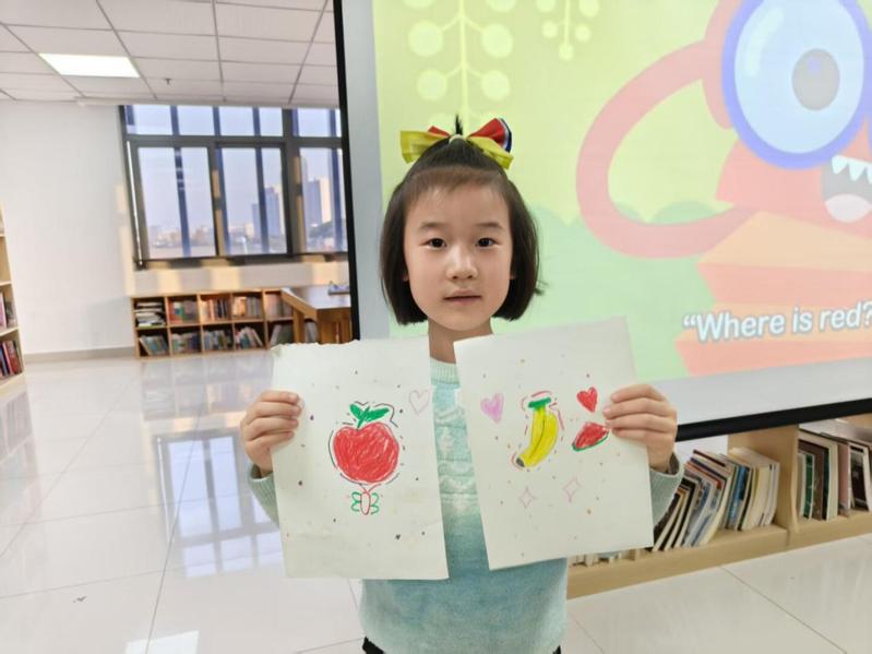 为营造社区国际化氛围,激发儿童语言学习兴趣与艺术创造力,12月13日,安徽职业技术大学外国语学院、校团委外语协会携手磨店社区社工站、富郢社居委、合肥新站区海星社会工作服务中心,在富郢社居委开展了“彩绘童趣,双语启智”外语学习主题活动。商务英语2521班毛雨欣与生态工程2班李佩娟两位同学,将基础英语学习与创意美术相结合,通过“趣味认知+动手绘画”的方式,带领社区儿童在色彩与水果的世界里进行了一场快乐的双语探索。