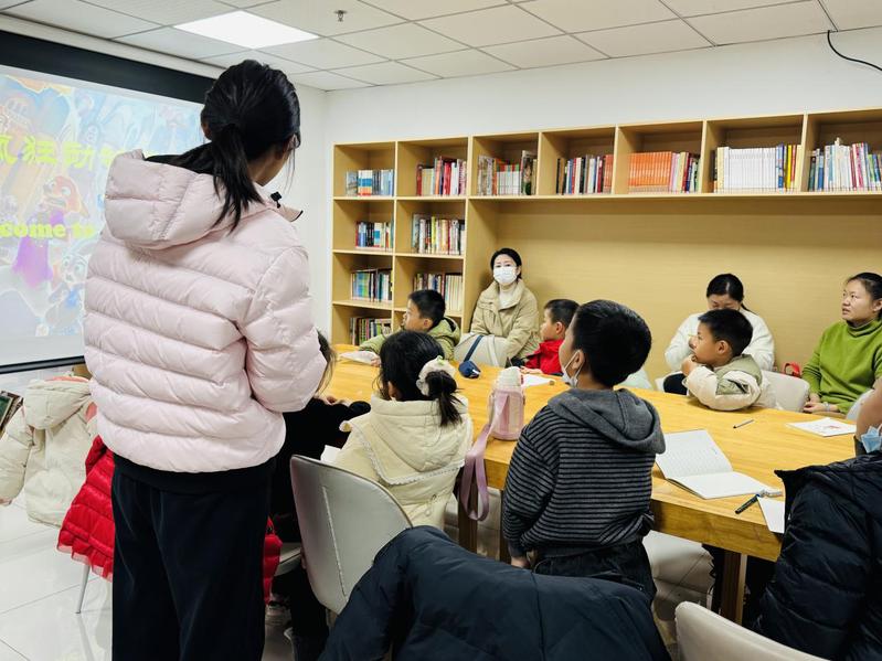 为激发社区青少年外语学习兴趣,营造沉浸式、趣味性的多元文化氛围,12月20日,安徽职业技术大学外国语学院、校团委外语协会携手磨店社区社工站、富郢社居委、合肥新站区海星社会工作服务中心,在富郢社居委开展了“萌动动物城,语你共成长”外语学习主题活动。商务英语2421班鲁慧霞、自动化2522班张紫妍两位同学将外语学习融入故事探索与游戏互动,让孩子们在扮演兔子朱迪、狐狸尼克等经典角色的过程中,轻松开启外语启蒙之旅,体验跨文化交流的乐趣。