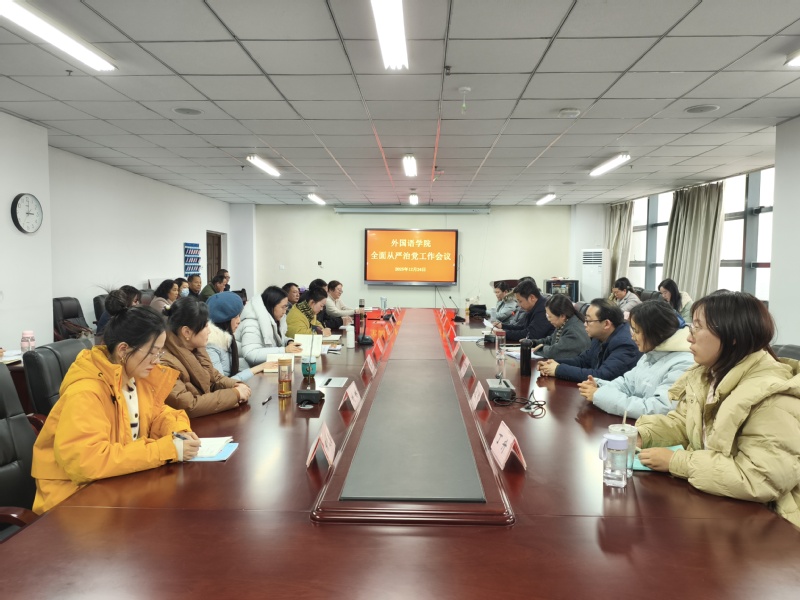 12月24日,外国语学院在图文信息中心十三楼会议室召开全面从严治党工作会议。会议由外国语学院党总支书记何晓皖主持,外国语学院院长胡菁蕾和全体教职工参加了会议。