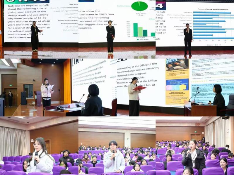 本次大赛共邀请7名中外教师担任评委,决赛设置“职场描述”与“职场问答”两大核心环节,选手们围绕指定主题进行了演讲与问答。