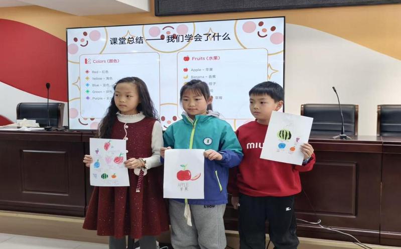 为厚植志愿服务情怀,挖掘外语专业育人价值,丰富社区少年儿童的课余生活,培养孩子们的英语表达兴趣,搭建校园与社区联动的公益服务桥梁,3月14日下午,安徽职业技术大学外国语学院、校团委外语协会携手磨店社区社工站、光明社居委、合肥新站区海星社会工作服务中心,走进社区三楼活动中心,开展“果香满园 英语乐学”趣味外语主题志愿活动,在智造工程1班曹怀仁、智造工程1班孙婧瑜两位同学的耐心带领下,为辖区孩子们打造沉浸式、趣味化的英语学习体验,现场童趣盎然、热闹非凡。