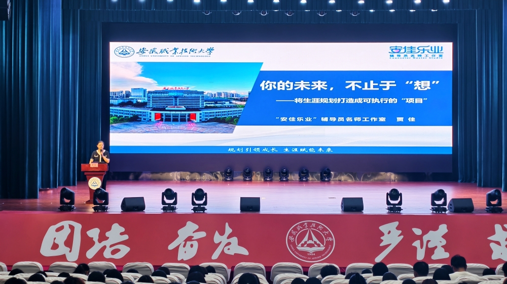 艺术与创意学院专职辅导员贾佳担任主讲,为新生带来题为《你的未来,不止于“想”——将生涯规划打造成可执行的“项目”》的专题报告。贾佳从 “目标层”、“能力核” 与 “行动图” 三个维度层层深入,引导学生认知自我、适应环境、积极行动,鼓励大家以规划为舟、以行动为桨,在大学生涯中稳步前行、勇敢启航。