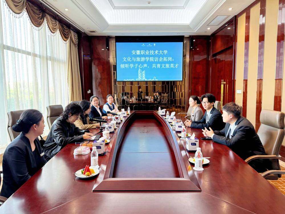 徐李莉向企业方介绍了学校近年来的发展成就,特别是职教本科建设方面的进展。她强调,文化与旅游学院始终将产教融合作为人才培养的重要抓手,持续推进实践教学模式创新。以酒店管理与数字化运营专业为例,依托企业真实场景的实践教学,不仅帮助学生夯实专业技能,更引导他们及早树立学习目标、明确职业方向、规划成长路径。徐李莉还就进一步构建长期稳定、协作互补、共同发展的校企战略合作关系,与企业代表进行了深入沟通。