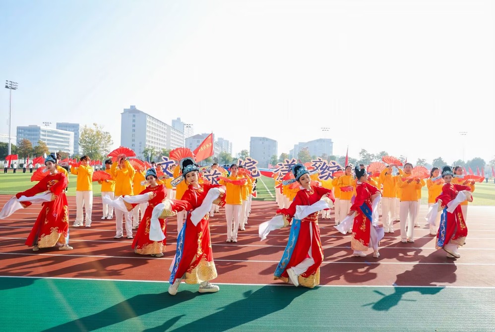 开幕式上,悠扬黄梅戏韵萦绕绿茵场,学子们水袖轻扬、身姿流转,将徽风皖韵的典雅厚重徐徐铺展,让入场式成为一场彰显文化自信的人文展演。随后的广播体操比赛中,同学们队列整齐、精神抖擞,规范有力的动作尽显青春朝气,以三等奖的佳绩展现了文旅学子优良的纪律作风与精神风貌。