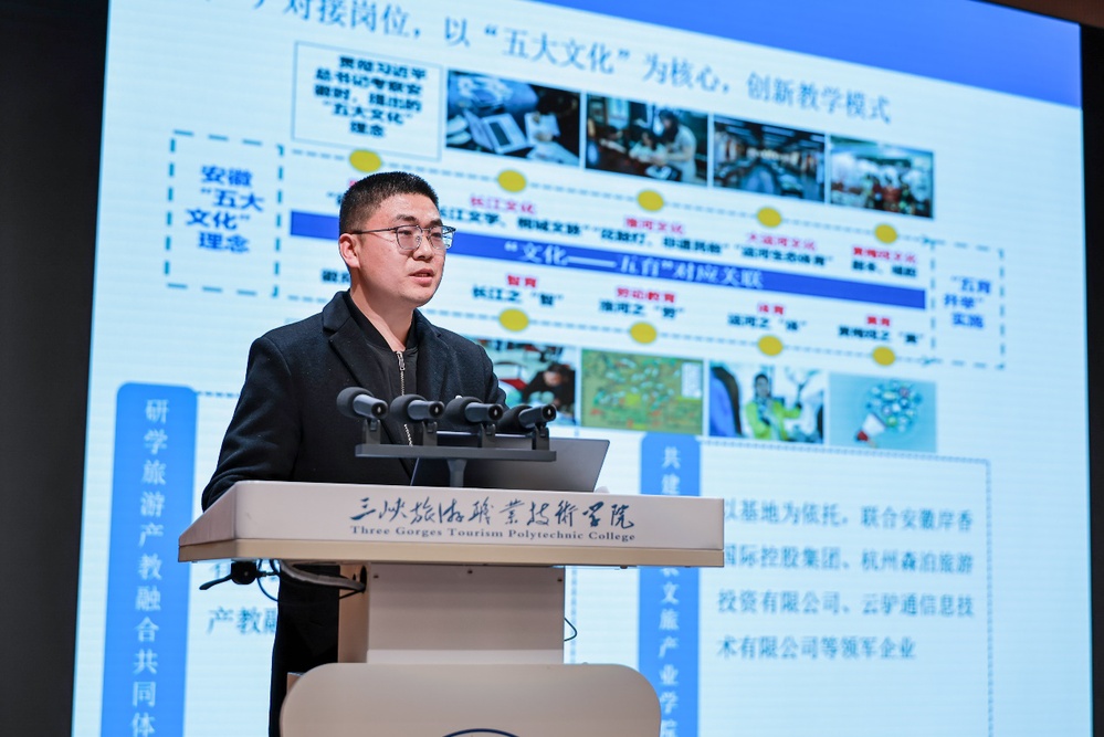 11月24日,由中国职业技术教育学会主办,智慧文旅职业教育专业委员会承办的《AI赋能,“文旅+百业”:构建智慧文旅职教新生态》全国“五金”说课活动,在三峡旅游职业技术学院顺利举行。文化与旅游学院旅游管理教学创新团队提交的《扎根江淮,辐射长三角,校企协同打造安徽文旅“金基地”》案例,在全国上百所高校投稿案例中成功入选,被邀请在大会上做专题展示,并分享学院在校企协同育人、服务区域文旅产业发展方面的创新实践与阶段成果。