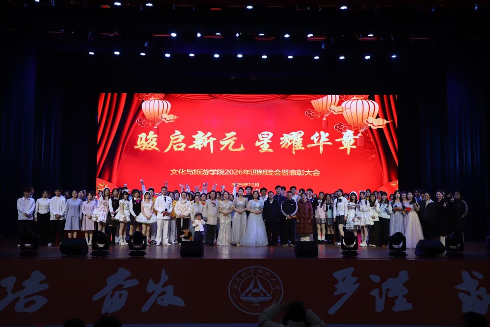 骏马启新程,星耀谱华章。近日,文化与旅游学院“骏启新元·星耀华章”2026年迎新晚会暨2025年度表彰大会在至立会堂举行。学院党政负责人徐李莉、童登峰、高洋与全体师生欢聚一堂,共同见证荣耀时刻,迎接崭新未来。