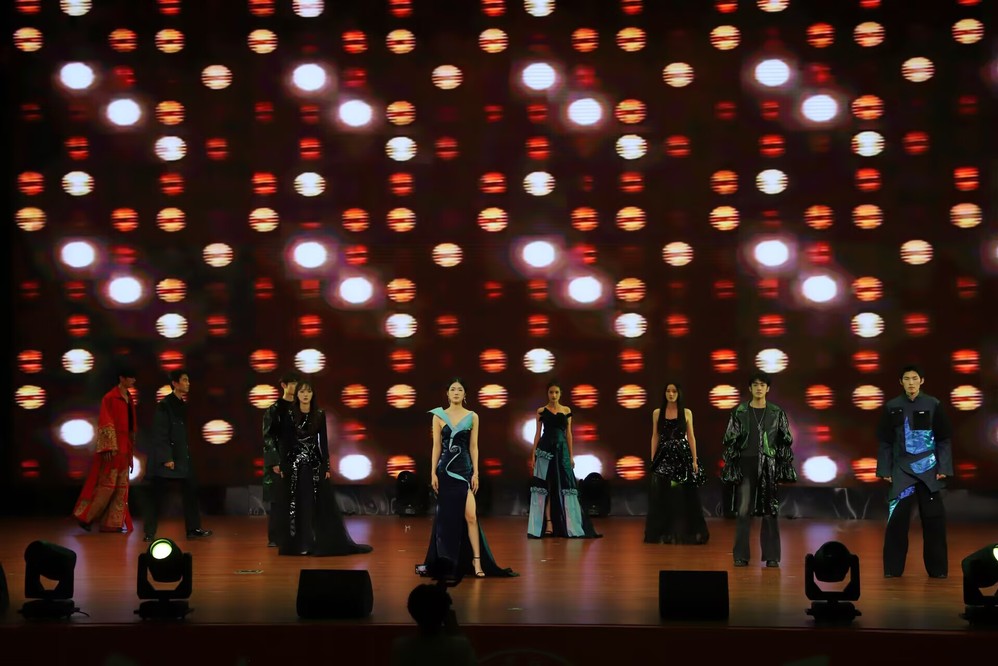 校园模特队携原创设计自信登台,带来一场充满张力与想象力的时尚大秀。他们步伐坚定,姿态从容,将创意转化为流动的视觉语言,每一个转身、每一处细节都凝结着对美的独特理解与大胆诠释。这不仅是一场时装展示,更是学子们将灵感具象化、将文化元素融入当代审美的创造性实践,充分展现了文旅学子融合艺术感知、文化理解与时尚表达的综合素养。