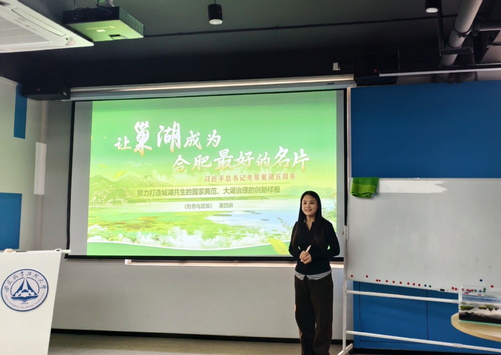 为充分发挥优秀思政课成果的示范引领作用,推动理论学习向生动实践深度转化,文化与旅游学院于1229日举办“特等奖课堂领航,青春生态行动”主题实践活动。活动特邀安徽省第四届大学生讲思政课高职组决赛特等奖作品《让巢湖成为合肥最好的名片——努力打造城湖共生的国家典范、大湖治理的创新样板》主创团队——文化与旅游学院耿霄、胡子童进行现场分享,学院师生党员、入党积极分子及团学干部代表齐聚一堂,共赴这场生态育人的实践之约。