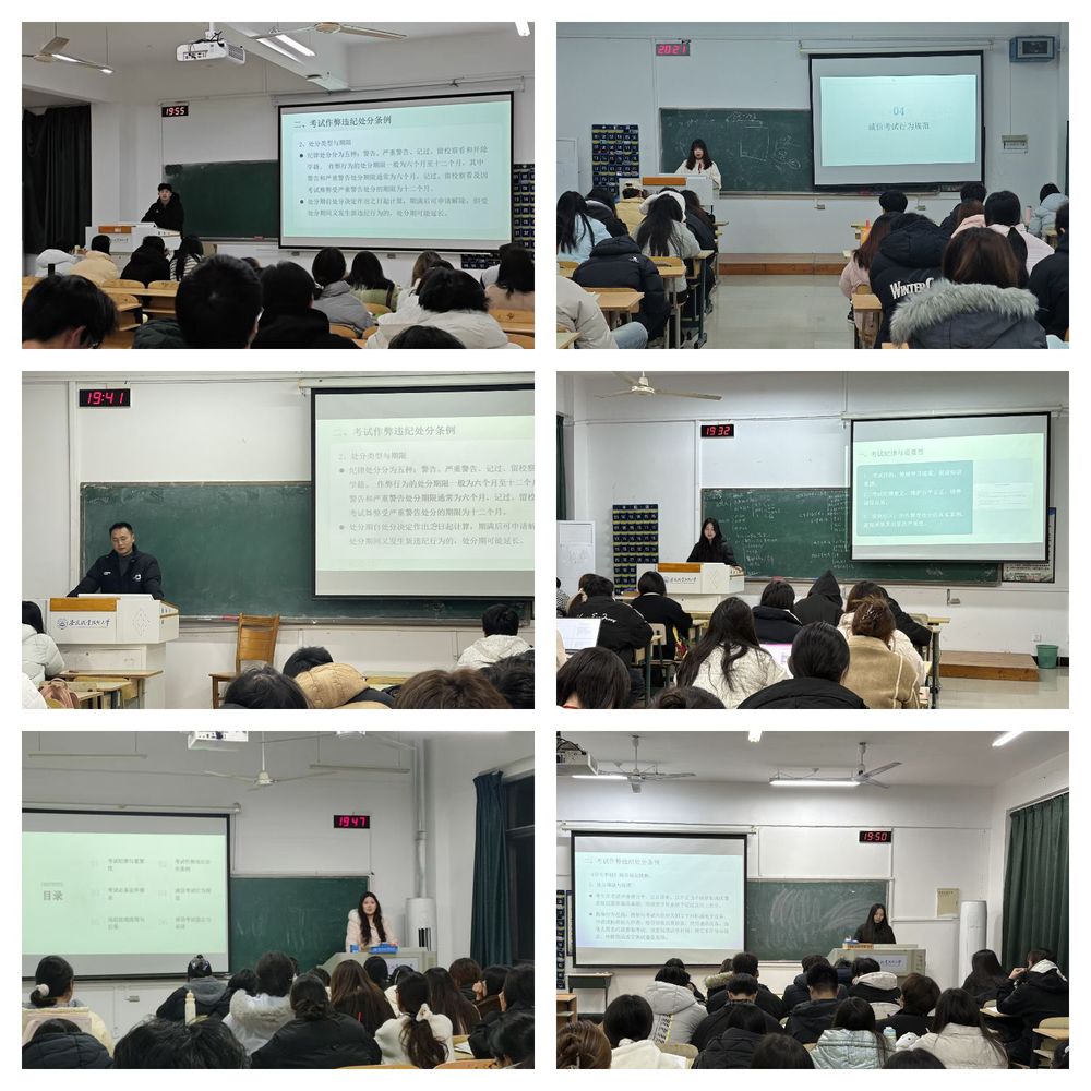 宣讲团队深入各班级开展诚信考试宣讲,累计进行8场次主题宣讲,实现了学院2025各专业的全面覆盖。为确保宣讲质量与内容一致性,学院精心制作了统一的宣讲PPT,内容涵盖考试纪律规定、学术诚信重要性、违纪后果及典型案例分析等多个方面。宣讲过程中,团队成员结合生动案例,向同学们阐明了诚信应考不仅是遵守校纪校规的基本要求,更是个人品德修养的重要体现。