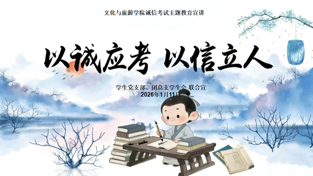 111日,文化与旅游学院开展诚信考试主题教育活动。此次活动由学院学生党支部与团总支学生会党团共建联合开展,旨在营造公平、公正的考试环境,培养学生诚信应考意识,弘扬诚实守信的传统美德。