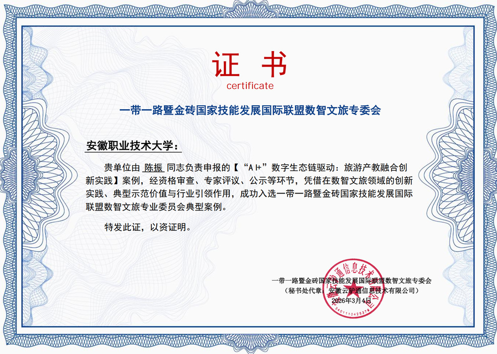 下一步,学校将以此为契机,继续深化教育教学改革,强化“AI+”数字生态链在旅游专业群中的建设与应用。同时,将进一步拓展国际视野,深化与“一带一路”及金砖国家院校、企业的交流合作,共同开发更具前瞻性的数字化教学资源和实践项目,致力于培养更多具备国际视野、数字素养和创新能力的智慧文旅人才,为服务国家战略和区域文旅产业高质量发展贡献更大力量。(图文/陈振)