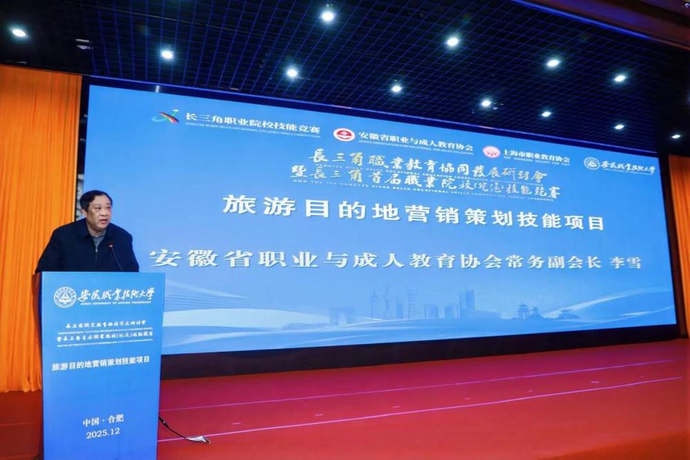 为深化长三角职业教育协同发展,搭建皖沪两地职业院校文旅专业交流展示平台,12月7日,长三角(皖沪)职业教育协同发展研讨会暨长三角首届职业院校(皖沪)技能竞赛“旅游目的地营销策划”赛项在我校顺利举办。来自皖沪两地的中职、高职参赛队伍齐聚一堂,以创意为笔、专业为墨,上演了一场精彩绝伦的文旅营销策划盛宴。